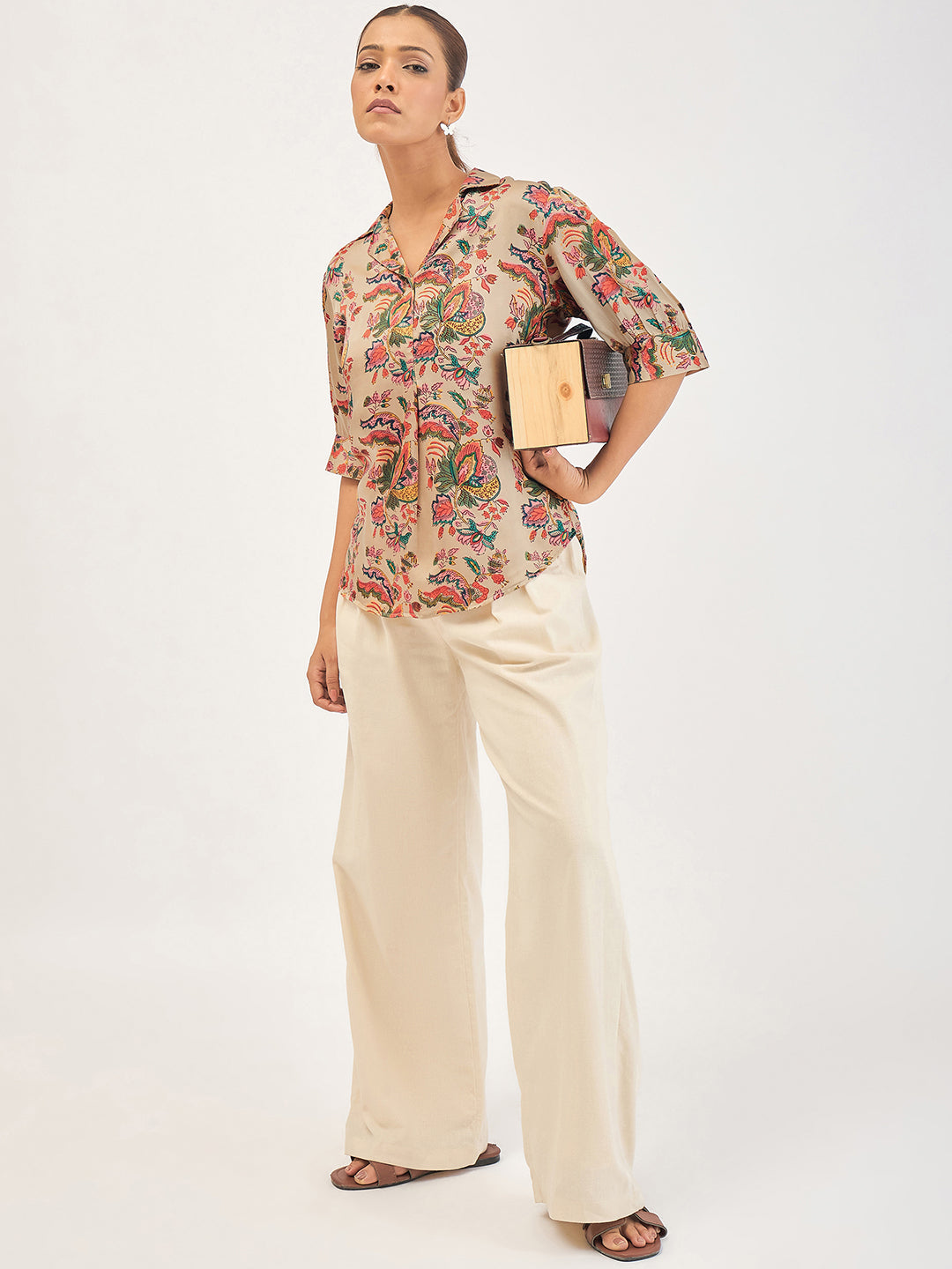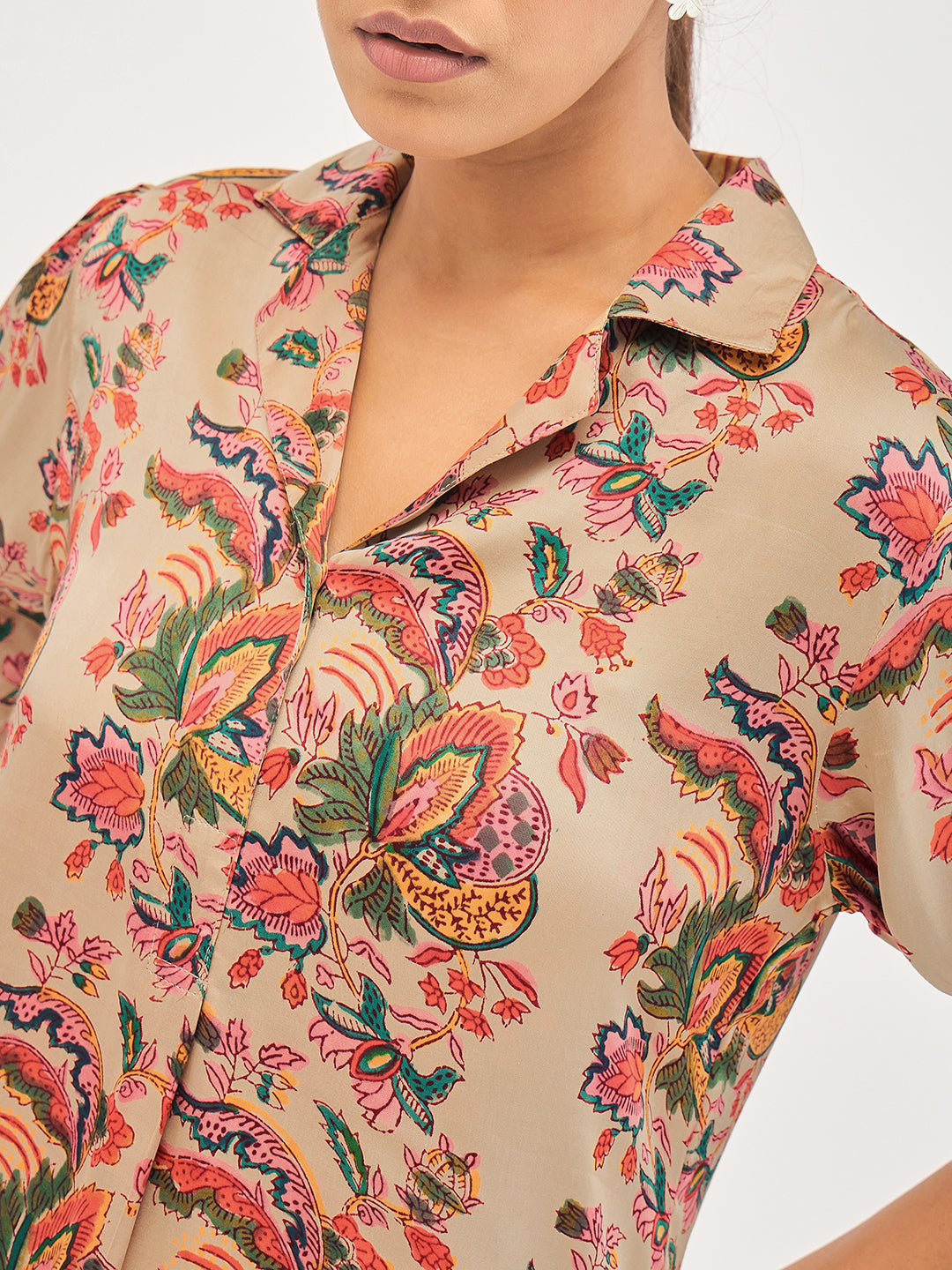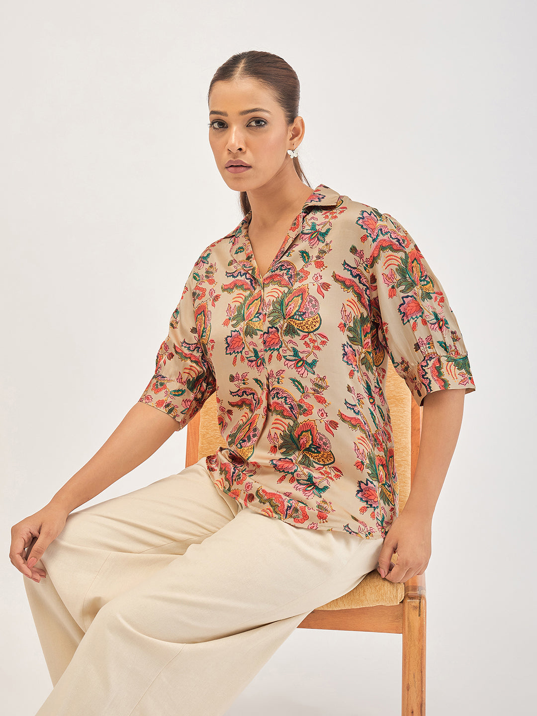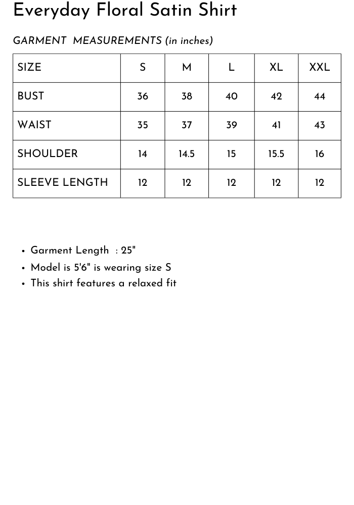 Embrace everyday elegance with our Everyday Floral Satin Shirt. Crafted from lustrous satin and adorned with delicate hand block printed florals, this shirt blends comfort with quiet charm. The relaxed fit drapes beautifully, offering a fluid silhouette that moves with ease. Perfect for both casual and semi formal occasions, it’s your go-to piece for effortless style-day in, day out.