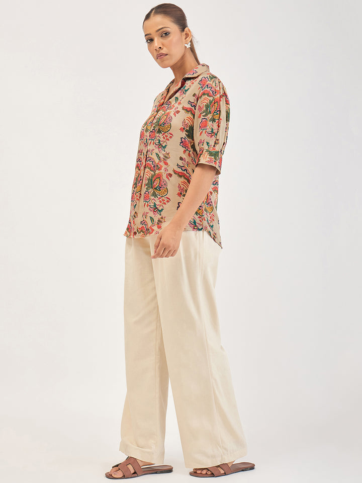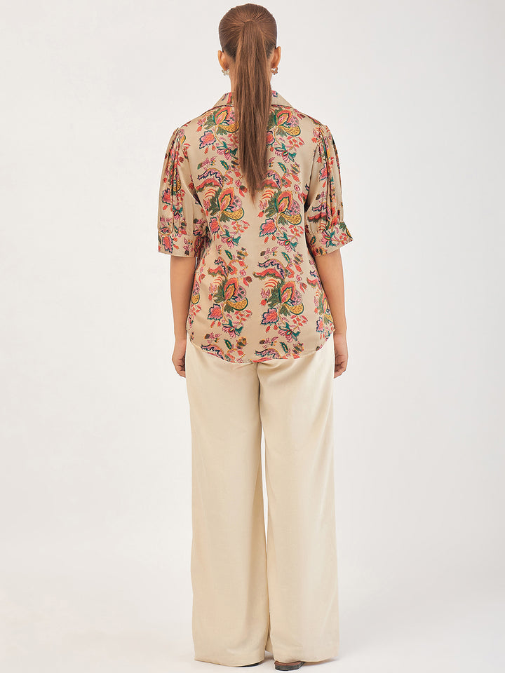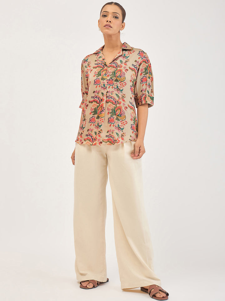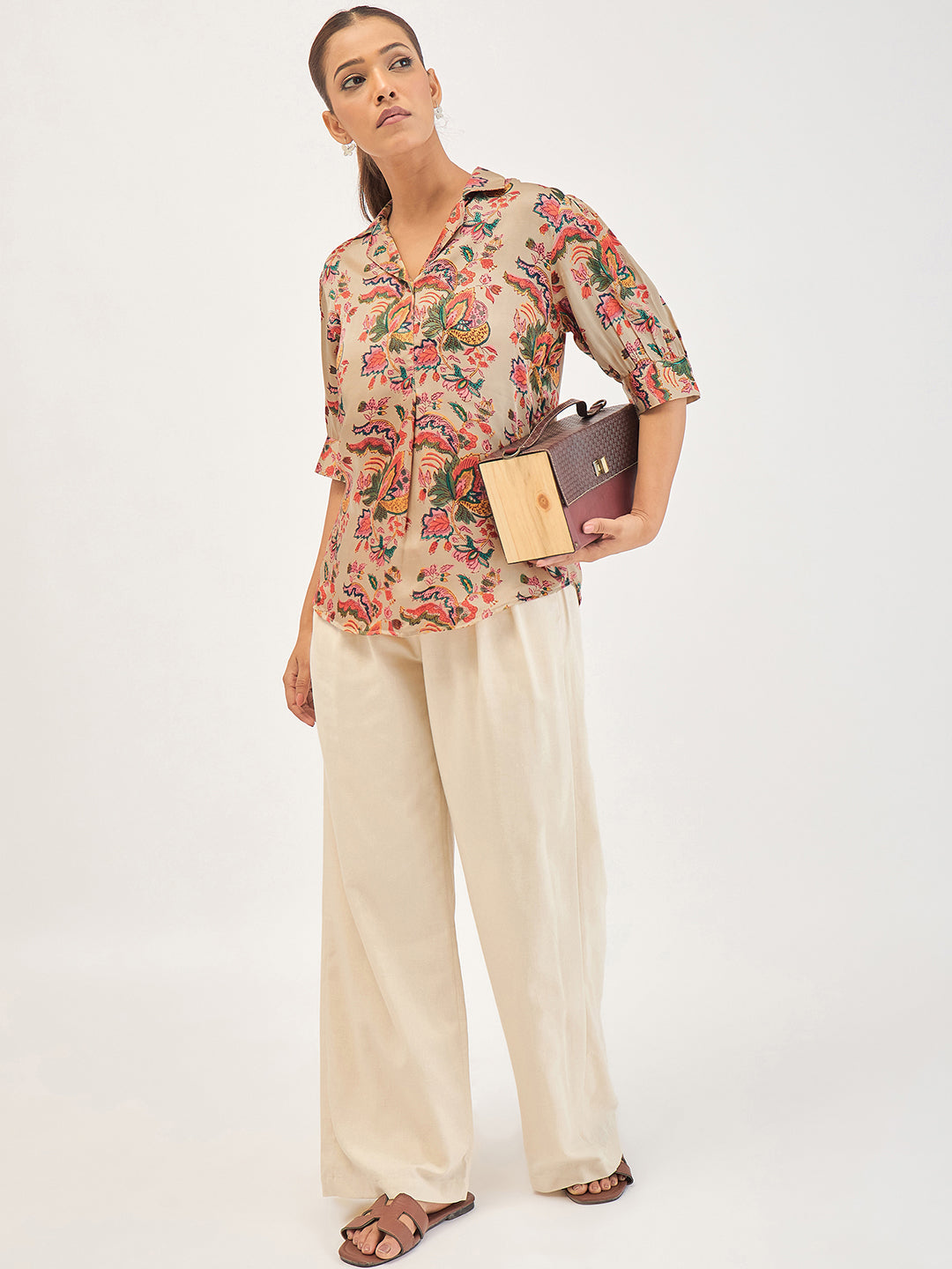 Embrace everyday elegance with our Everyday Floral Satin Shirt. Crafted from lustrous satin and adorned with delicate hand block printed florals, this shirt blends comfort with quiet charm. The relaxed fit drapes beautifully, offering a fluid silhouette that moves with ease. Perfect for both casual and semi formal occasions, it’s your go-to piece for effortless style-day in, day out.
